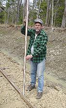 When I got tired while carrying rail last year, I tried to position myself between two taller and stronger workers. After all, I wasn’t as young as I used to be. Stopping to take pictures also saved my aching body. This year Steve must have realized I was a bit tired, because he asked me to be his “stick man.” while he used the transit. What a break! Maybe he thought I had taken enough pictures.