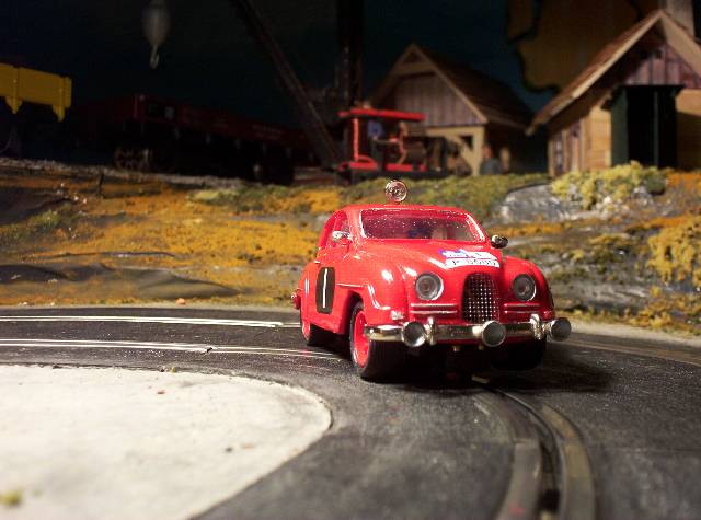 Na de eerste proefrit zijn er de volgende bevindigen. De Saab is bijzonder zwaar met de MRRC motor, de zware kunsthars kap en ook de witmetalen bumpers. De MRRC motor heeft