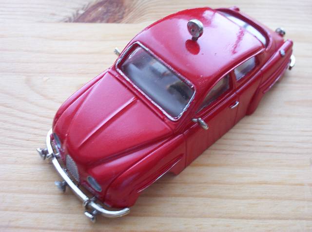 De Saab 96 is gebouwd van een bouwkit van OCAR.Deze kit bevat een kap en een los interieur beide van kunsthars. De kit bevat verder een stuk de termoform plastic voor de ruitjes en