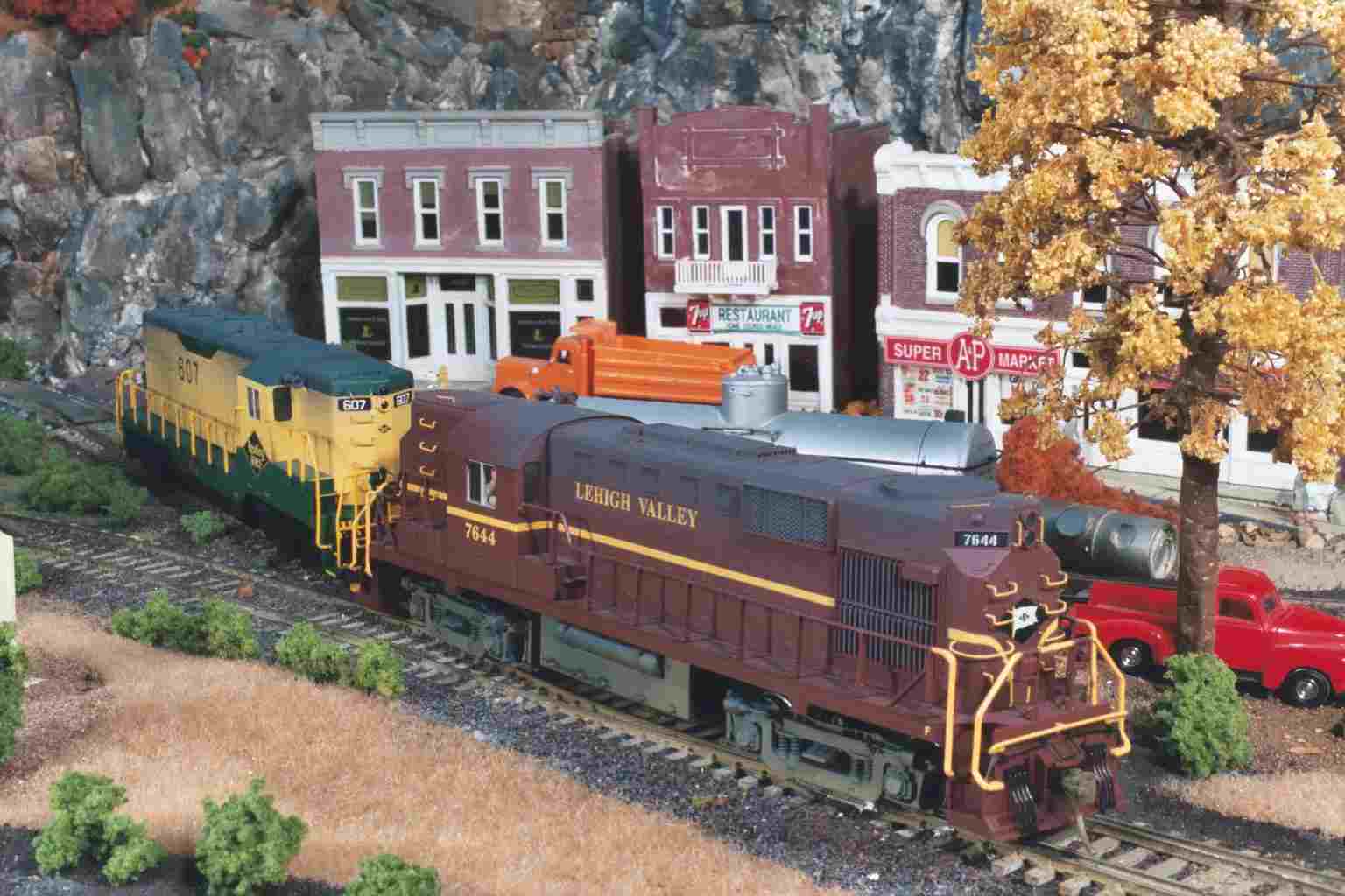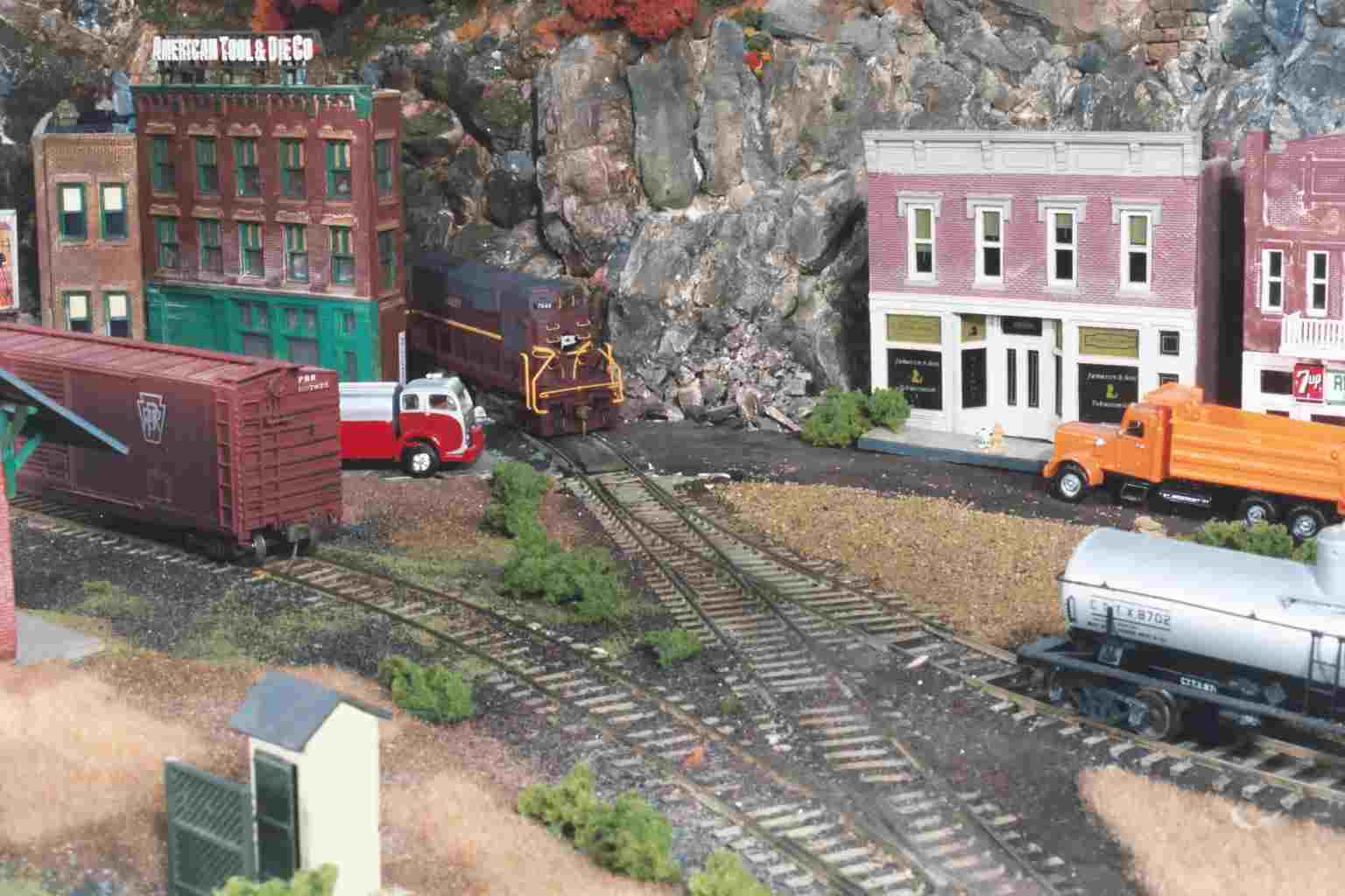 There's just enough clearance on the tail of the switchback siding at American Tool and Die to handle two B-B road diesel units and one car. This means that any cars on the American Tool and Die siding must be moved in order to switch Jacobs Coal.