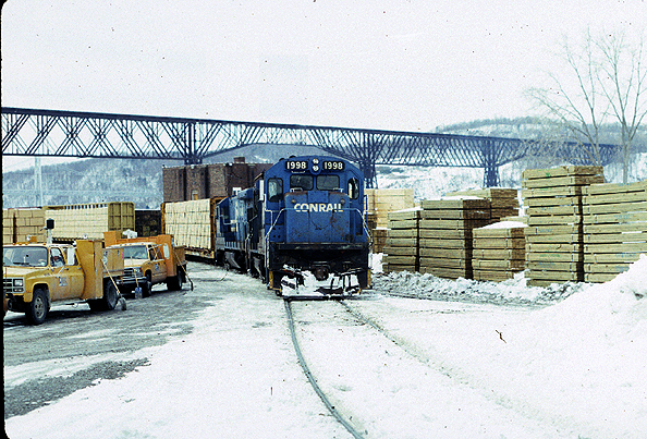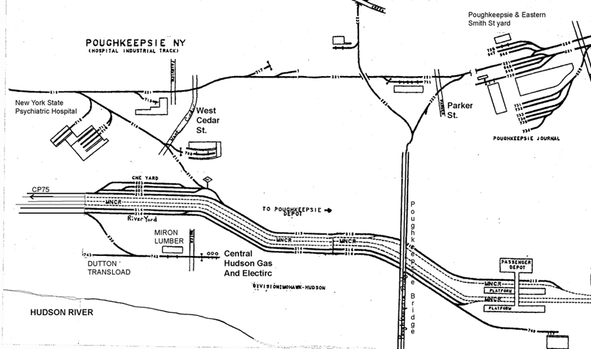 (Editor's note: This original unpublished article was written in 1994. I left it as is to give a sense of all that has changed since then...not for the better unfortunately. The Hospital Branch has been abandoned by CSX since 2001 and the yards in Poughkeepsie are rarely used. Miron and Dutton lumber facilities are closed. The famous bridge remains inaccessible, entrenched in legal battles and questionable motivation.)
