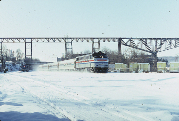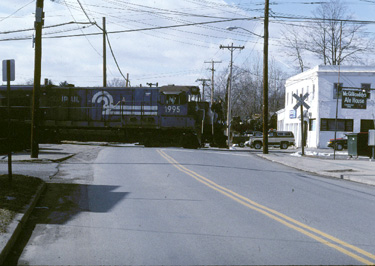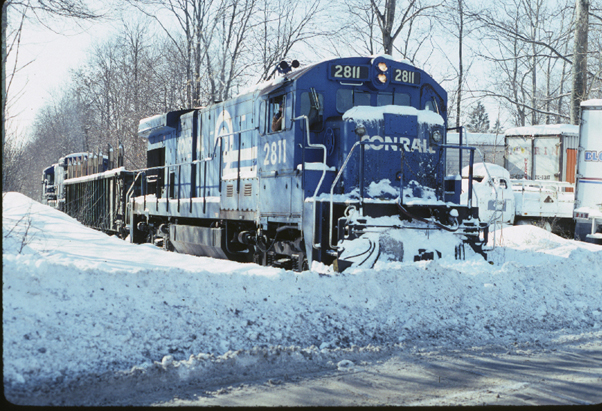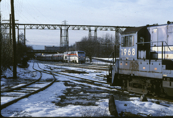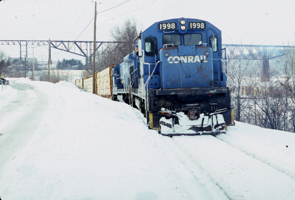 Although on private property, with permission a good shot can be had of the power with the Hudson river and the Poughkeepsie bridge in the background. In winter 1994, derailments due to ice and snow caused Conrail to contract with Metro North for grade crossing clearance in the city .
