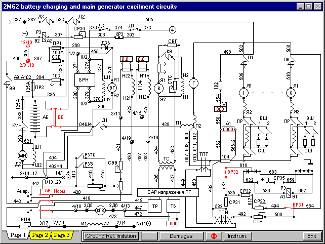 charging and main generator excitment circuits 2M62 diesel starting circuits 2M62 moving and disel control circuits |