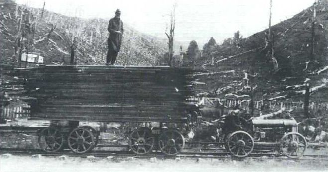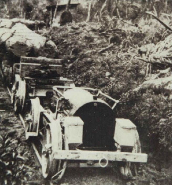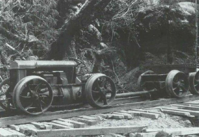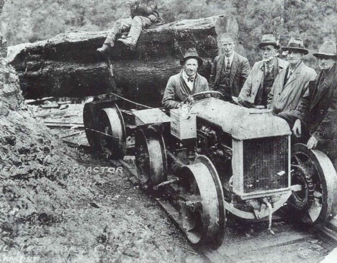 Used V8 Cadillac or Fordson power Tractor drove 4-wheel log bogie. 1. Built 1923