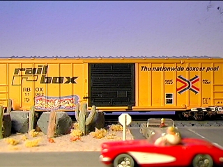 I have a holiday theme to the railroad and I thought that some billboard cars which had holiday themes would be nice. The more I thought about it the less I like the idea because these cars were from the wrong era. Modern cars tend to be boring looking because the the billboard dilemma which took advertising off of railcars. I didn't know what to do until I saw a couple of real freight cars that had been painted to holiday themes. This was my answer, graffiti. I guess there really is a prototype for everything.
