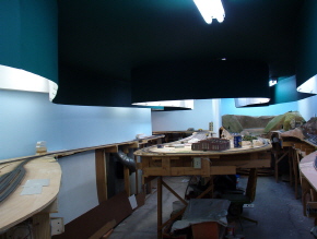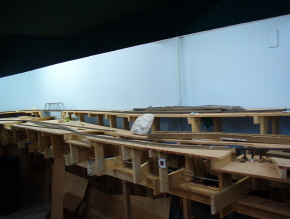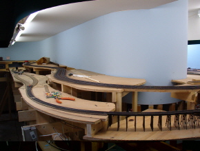 More work has been done and we are running trains! The CTC panel is under construction and 95% of the track work is done. We are building the last few bridges…the biggest ones…and beginning the scenery! Keep watching for more pictures and updates!