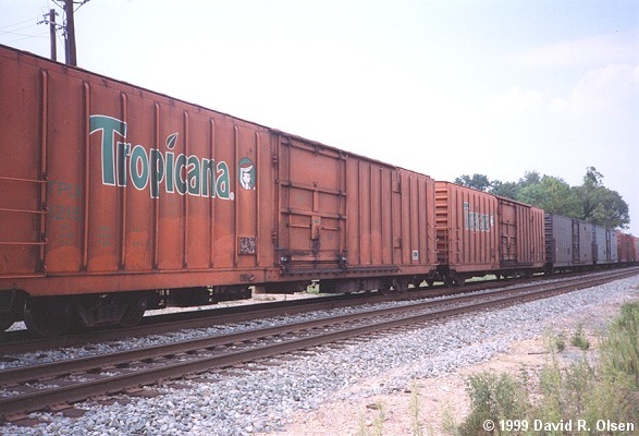 Several times each week, CSX hauls fresh Tropicana orange juice from Florida up to a distribution