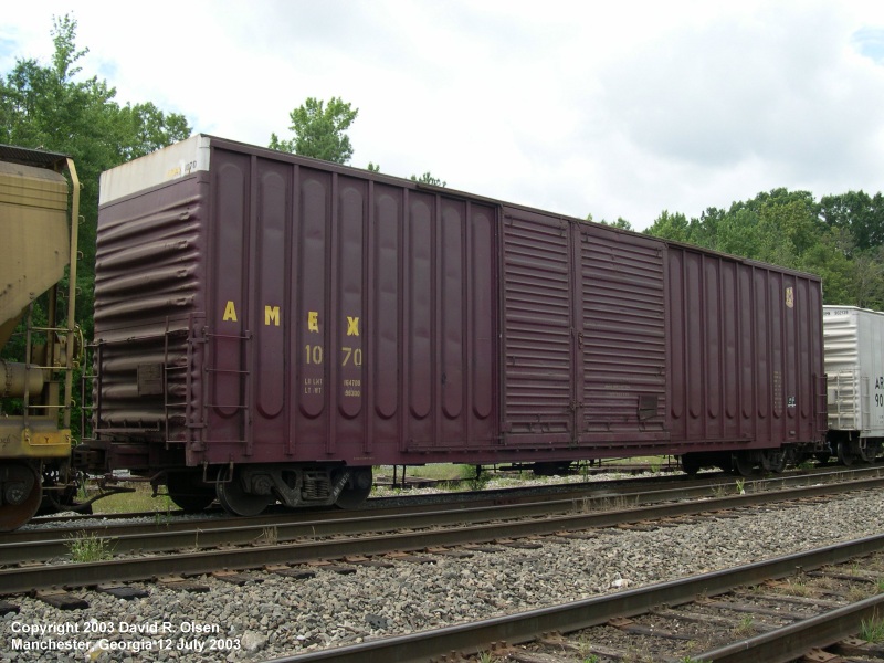 AMEX 1070, an ex-Southern Pacific B-100-39 class box car, displays a unique style of "waffle" sides. 12 July 2003