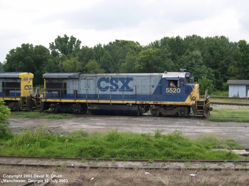 CSX B36-7 5520. This GE diesel and a sister unit appear to be regulars that handle switching and local traffic at Manchester. 12 July 2003.