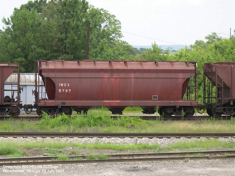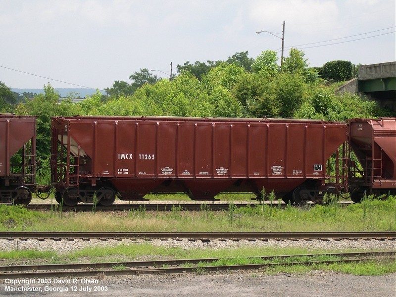 This interesting assortment of covered hoppers was part of a long grain train consisting mainly of IMC Global cars. 12 July 2003
