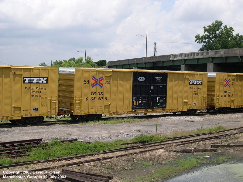 TBOX 665490. These brand new TTX cars are a common sight in Machester Yard. 12 July 2003