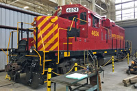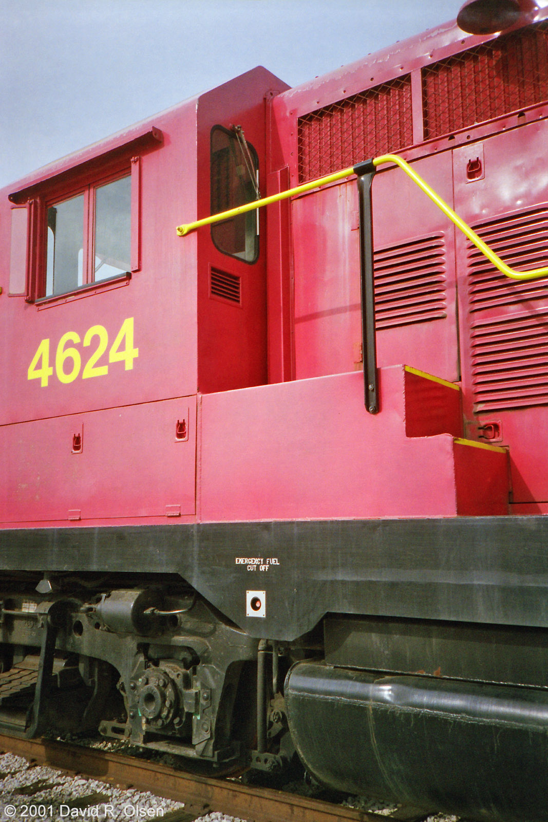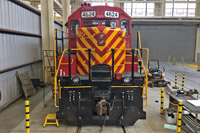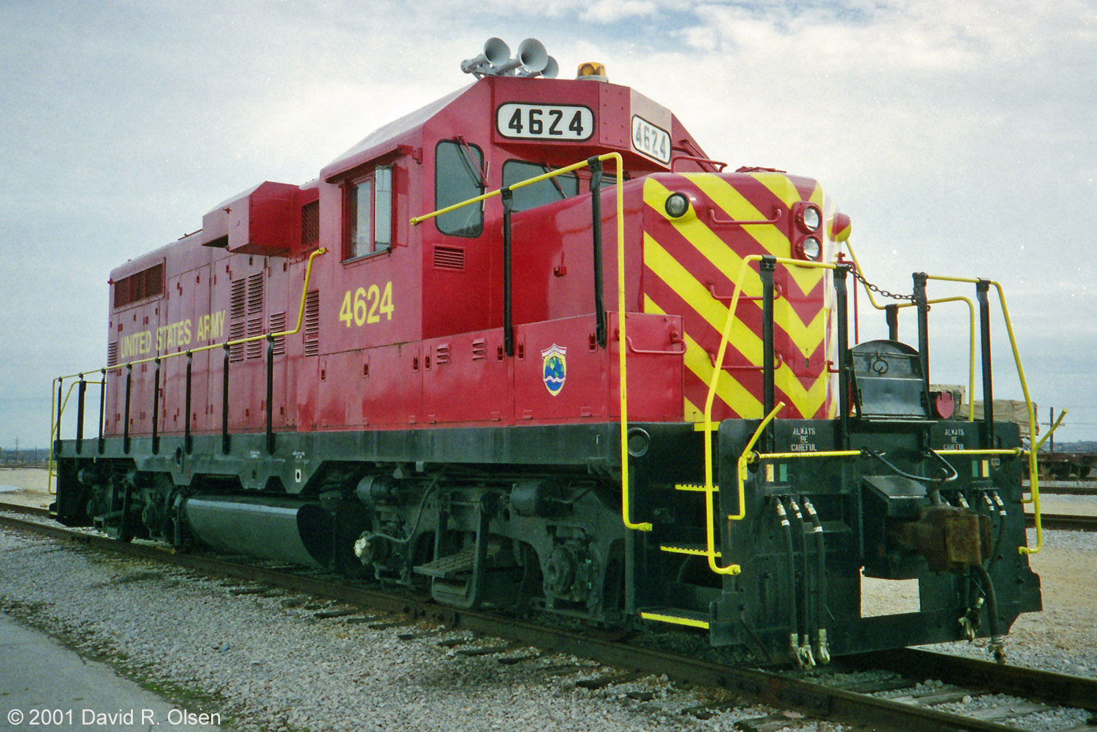 This unit was eventually relocated to Fort Eustis, where it helps train Army railroad crews. At some point, its nose marker lights were blanked out, and it received a fresh coat of paint. It no longer wears the Directorate of Logistics (DOL) logo on the battery boxes.