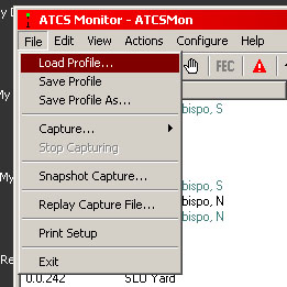 Now that everything is setup you are ready to run the monitoring package. The way that this has been set up currently you must have an internet connection to get data from the San Luis Obispo and Cuesta Grade Servers. The easiest way to get things running is to load a profile, which has been provided here. Click on "File > Load Profile..." as shown in the image below.