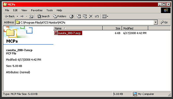 The cuesta_200-7.mcp file must be placed in the MCPs directory (C:\Program Files\ATCS Monitor\MCPs).