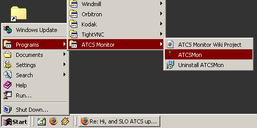 Once the three files have been place in their proper directory start up ATCS Monitor. The executable can be found under Programs on the Start menu as in the picture below or on the desktop if you chose to let the installer place an icon there.