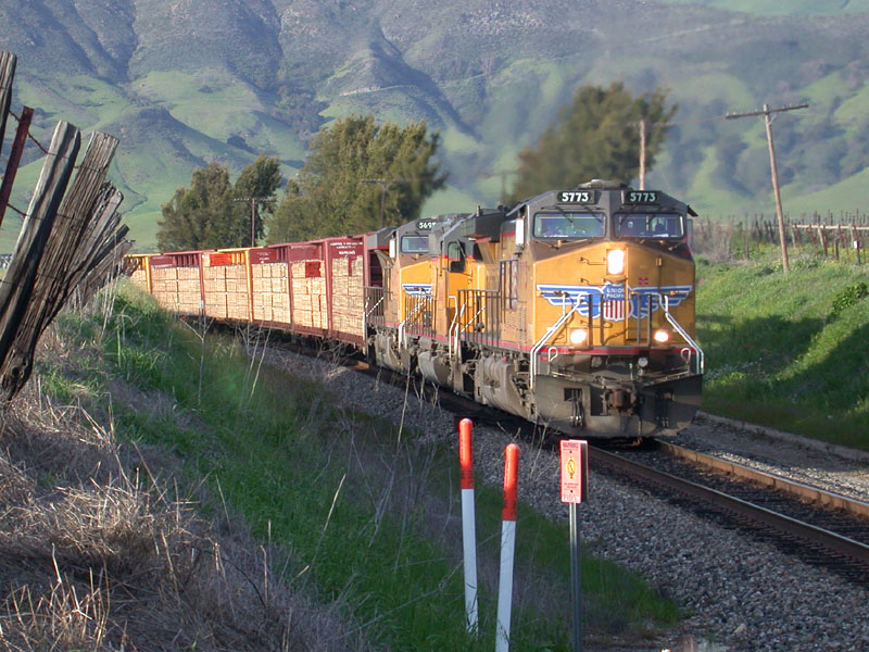 A northbound UP freight passing the Orcutt rd crossing in SLO.