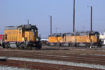 A UP GP15-1 sits in Newhall yard on Thanksgiving Day of 2004. A trio of other geeps are in the background awaiting assignment the next day.