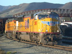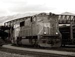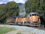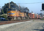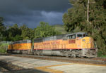 Union Pacific SD50 leads the local set up helper units back off the grade towards the depot in San Luis Obispo CA.