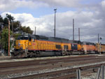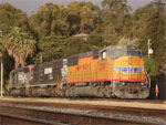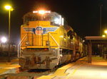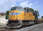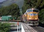 A Union Pacific SD70M leads a southbound freight through San Luis Obispo not long after the cost line was reopened. It had been closed due to a washout in Santa Barbara.