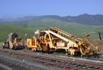 A UP tamper and ballast regulator are sitting on a siding at the north end of a section of cuesta grade that is double tracked known as Chorro.