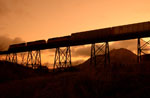 A southbound autos train crosses Stenner Creek Trestle as it heads in to San Luis Obispo.