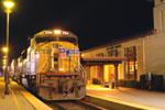 A southbound rail train sits in SLO waiting for a crew as the sky grows dark.