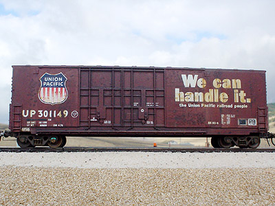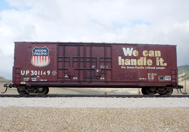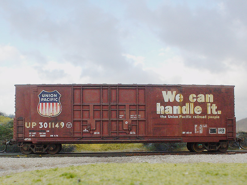 Hold on, I just rechecked my BC-70-5 slides, and I am now pretty sure all three are repaints, so they are no help after all. A quick check of the Color Guide shows the BF-50-4 40ft highcube appliance cars (Athearn's plug-door model) were built in 1967 with the RAILROAD shield. A slide of a BF-50-5 was rebuilt 11-68 with RAILROAD. So does a BF-90-6 built by SIECO in 6-69 (MDC's high-roof dbl plug model), while an identical BF-70-8 blt SIECO 9-71 has the UNION PACIFIC shield. In the Color Guide a BF-70-7 rebuilt in 7-70 has space for RAILROAD but it is not there and it does not look like it has been painted over. Finally, A B-70-7 blt 1-70 has the UNION PACIFIC shield, so it now looks like RAILROAD was dropped sometime in late 1969.