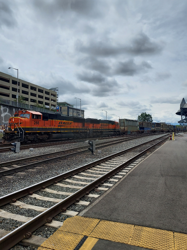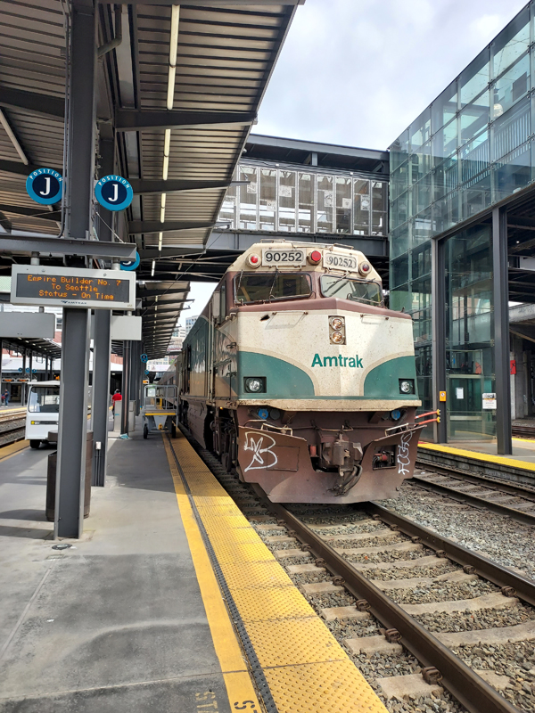 In the 1945 Leonard Bernstein musical "On The Town", three sailors ponder what to do in New York City with only 24 hours of shore leave. I didn't have quite that dilemma, but I did only have 30 minutes of layover at King Street Station in Seattle on Cascades train 517 heading back to Portland after a weekend trip. So, as any good railfan does, I got out my camera and went big train hunting... |