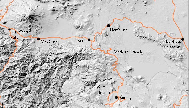 First a word about how mileposts are numbered on the railroad. All of the mileposts on the road count outward from McCloud except for the Hambone-Lookout section. Mileposts on the McCloud-Mt. Shasta section have a M-prefix; Mileposts between McCloud and Hambone are just numbers; milposts between Hambone and Lookout have BH prefixes; mileposts on the Bartle-Burney section have B-prefixes; and the Sierra branch has S-prefixes. Click on the following links to see pictures and get information on each segment of the railroad. |