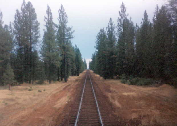 (Picture: #194) 6/1992. One of the flattest and straightest segments on the railroad is this stretch across Arkrite Flats. The old station of Arkrite was located here.