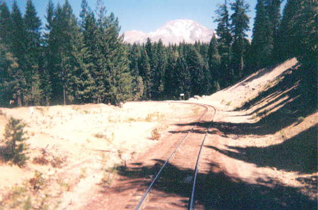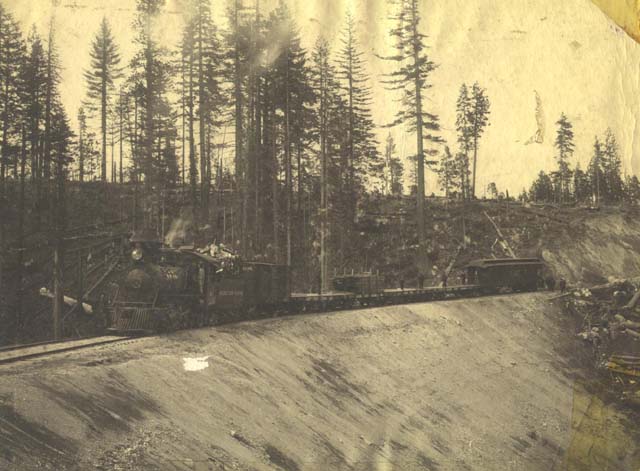 Locomotive #9 on the recently completed Big Canyon fill with a mixed train. Photograph courtesy of Heritage Junction Museum of McCloud, Inc. |