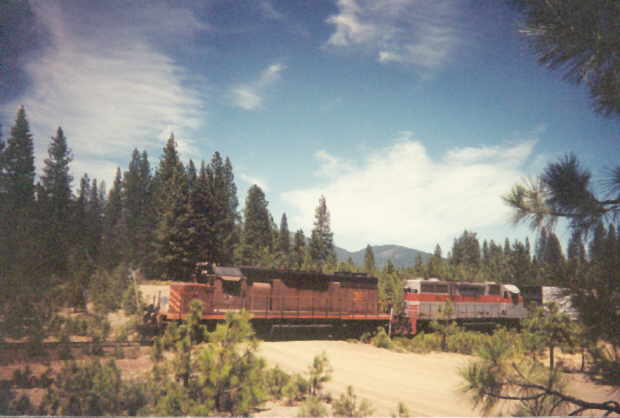 (Picture: #161) 5/2003. Locomotives #38 and #37 pass near Bigelow with a westbound freight.