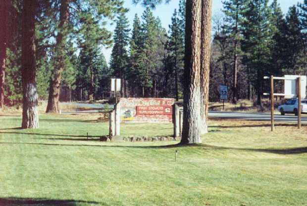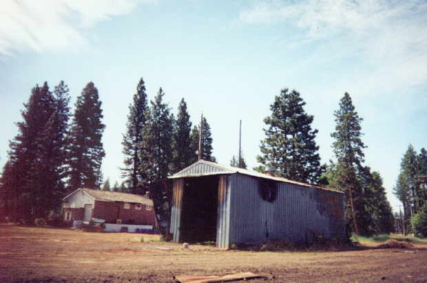 (Picture: #203) 11/2002. This vacant lot once held the Burney yard tracks. It was also the site of the 1955 golden spike ceremony celebrating the completion of the Burney branch. The railroad based a section crew out of this spot until about 1996, when it was abolished and all track maintenance was based out of McCloud. Most of the buildings (except for the shed in the center) were removed in the late 1990’s, and most of the yard tracks were removed in 2000. One long passing siding still exists where the railroad crosses the open field of grass in the distance. The site has been used as a reload only a handful of times, and trains very rarely operate to this point now. |