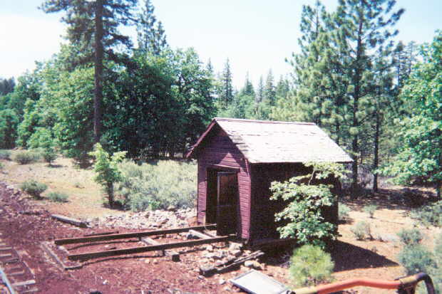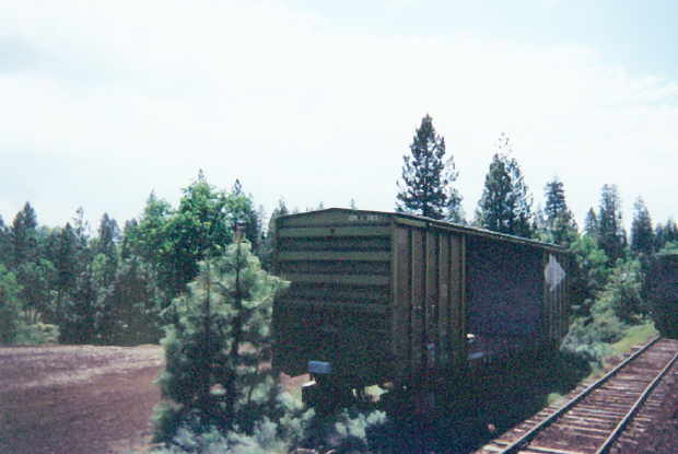 (Picture: #185) 5/2003. A Camino, Placerville & Lake Tahoe boxcar was placed on blocks here to facilitate the transloading of bagged diatomaceous earth from trucks to trains. |