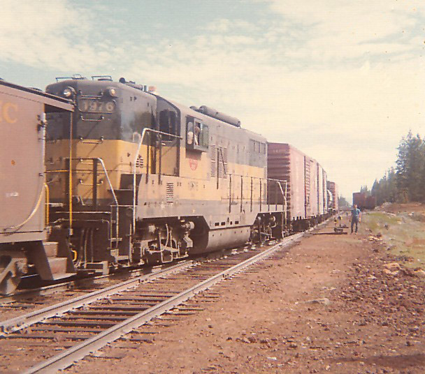 (Picture1102McCRRR0074) This photo is of a Burlington Northern weed spraying train preparing to enter the Lookout-Hambone line to spray weeds along the right-of-way. Even though BN has owned this line continuously since the late 1920's this was one of the very few times that BN has ever operated a train over this stretch. Photo by and courtesy of George Landrock. |