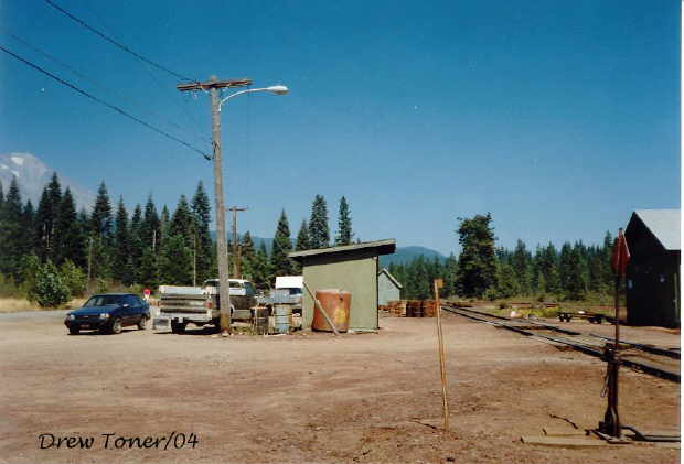 This and the next two photos are of the section sheds in the McCloud yards that house materials, vehicles and supplies used by track maintenance crews. Photo taken 1986 and is by and courtesy of Drew Toner. |