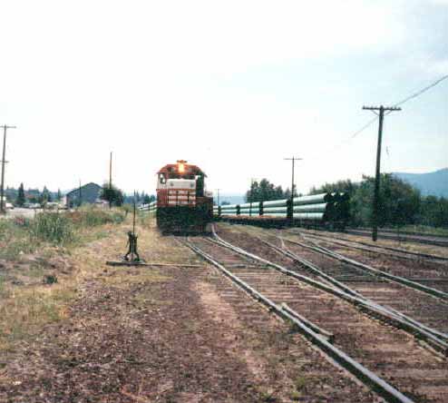 (Picture: SB012) The siding to the right once served a P&M Cedar Products mill. The site is now occupied by a water bottling facility. |