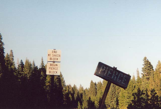 The station and block limit register signs at the west end of Pierce siding. Jeff Moore photo. |