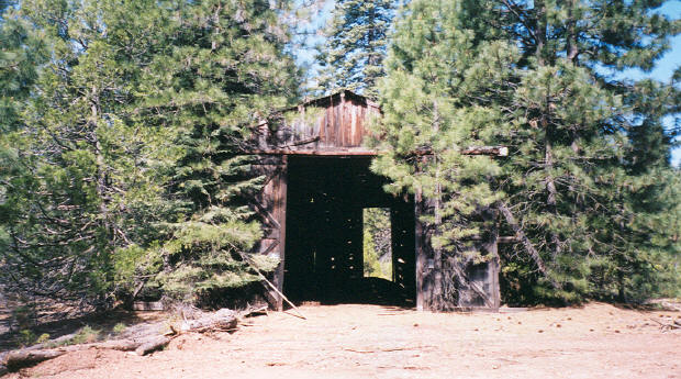An old shed, moved in by the lumber company to serve as a maintenance building for trucks after Pondosa ceased to be a base for railroad operations. |