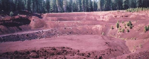 Another view of the Porcupine pit, looking north from the end of the spur. The spur circles the edge of the pit, joining the mainline in the gap in the trees on the left side of the photo. A small butte existed here prior to the commencement of quarry operations around 1931; obviously a lot of rock has been taken out of the ground from this location in the 70-plus years that the railroad took ballast material from this location. |