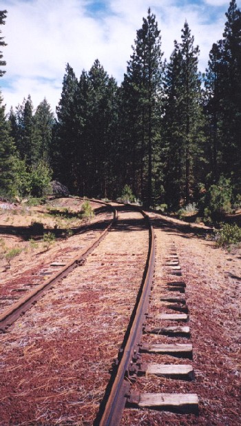 The Porcupine spur in June 2004, six months after operations over the line ceased. The line to the left is the mainline to Lookout, the line to the right is the spur into the ballast pit area. |