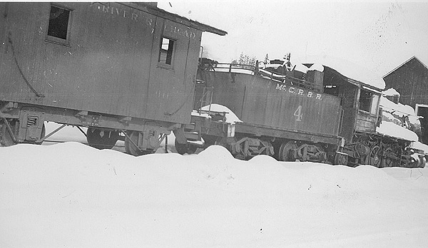 Derelict caboose #011 shares the dead line with locomotive #4 in McCloud. Photo from the Travis Berryman collection.