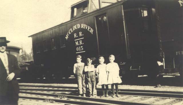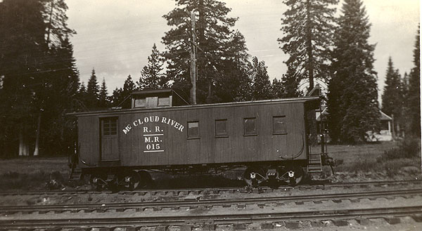 Caboose #015 next to the depot in McCloud. Photo from the Travis Berryman collection. |