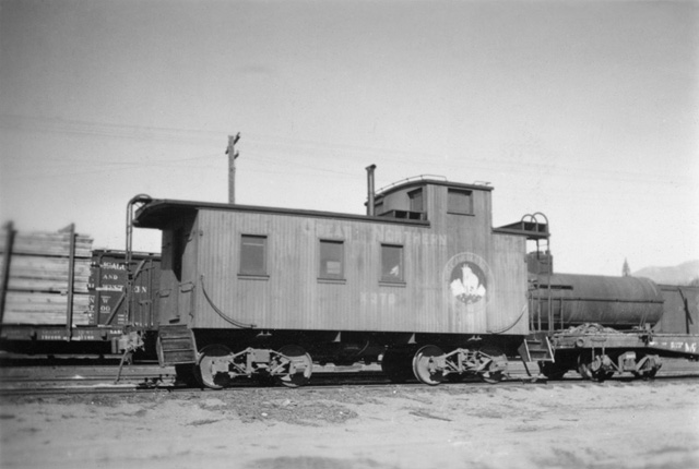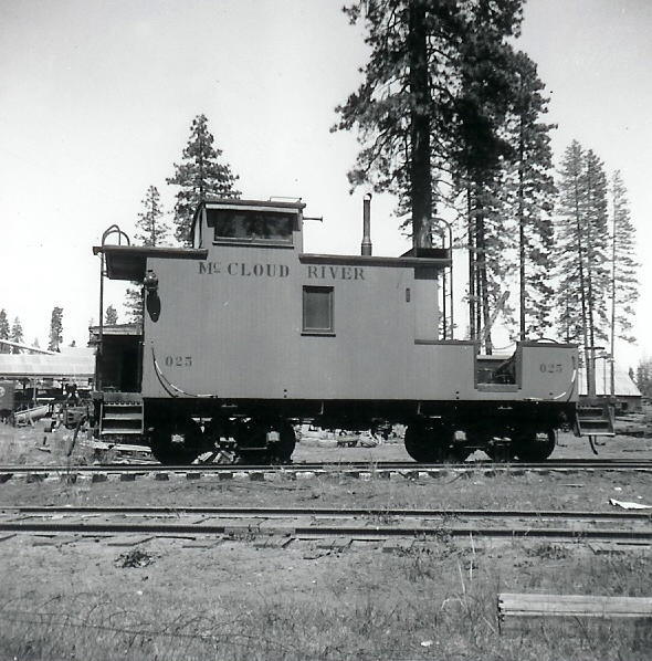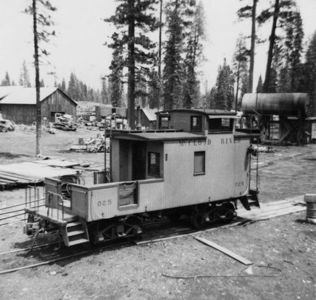 | The #025 in its second phase of life, with the old four wheel caboose body. Caboose was painted red at this time. Pondosa, CA. Courtesy of Brett Gibson. |