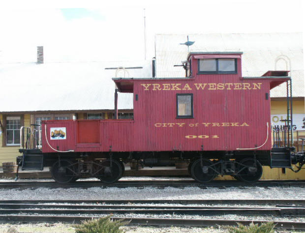 | The #025 did not see much service after arriving in Yreka, and although painted for its new owner it was never assigned a number and was rarely used. However, new owners took over the YW in 1999, and shortly afterwards the caboose was re-painted, numbered YW #001, and was named the City of Yreka. The caboose was then added to the YW's excursion train. Photo by and courtesy of Bill Killion. |