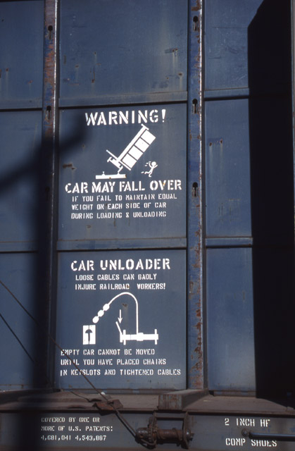 Loaded MR centerbeams at Berry in June 2006. Jeff Moore photograph. ![]() Safety warnings on the MR centerbeams. Roger L. Titus photograph.
