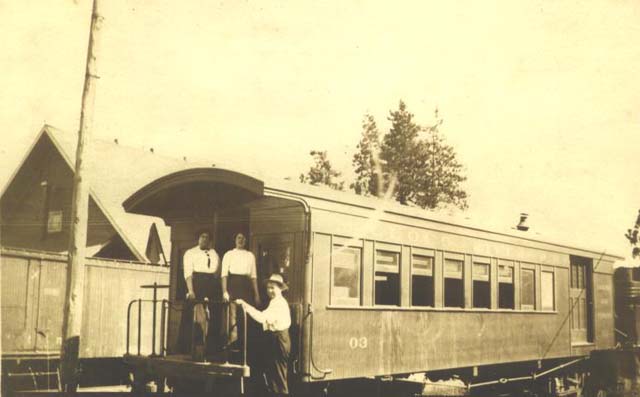 | Coach #03 at the McCloud depot before the cupola. Photograph courtesy of Heritage Junction Museum of McCloud, Inc. |