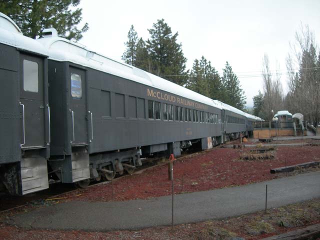 The Shasta Sunset Dinner Train parked at the McCloud depot. |