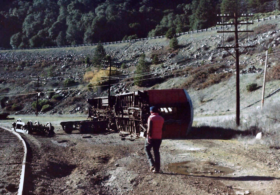 to be in the canyon. The escapade ended at Gibson, where debris piled by a train crew on some switch points caused the car