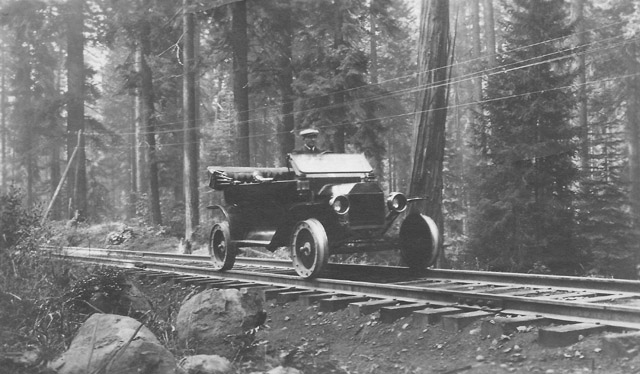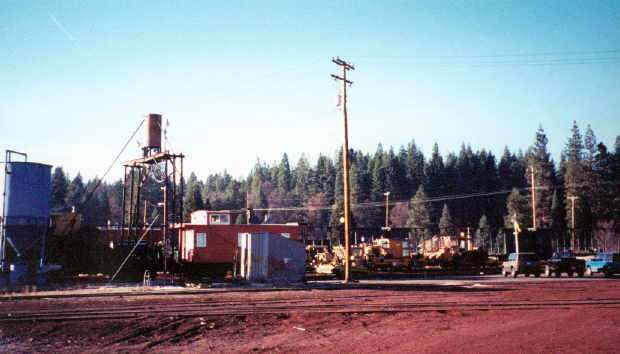 Early inspection car at the oil tank spur just out of McCloud. From the T.E. "Eddy" Glover